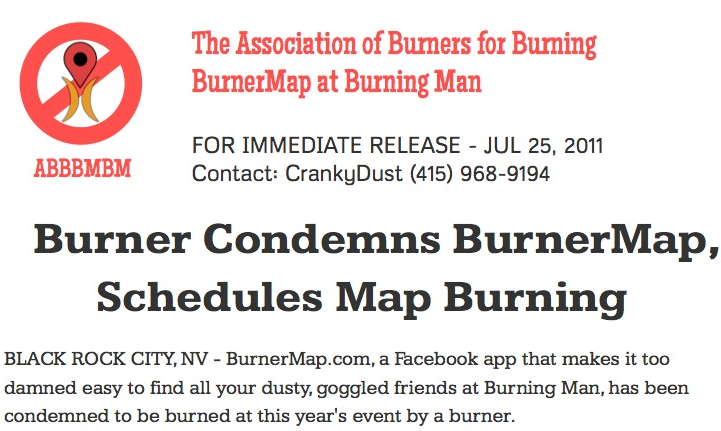 Proprio con questa domanda in mente, un partecipante storico dei Burning Man ha annunciato per il primo giorno un rogo pubblico, per bruciare tutte le mappe create con BurnerMap. E tornare allo spirito originario di incontri casuali.